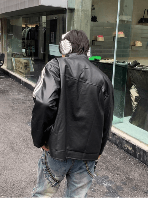 [K09] PU leather striped jacket st1918